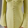 Lavish Alice Women’s Gemma High Neck Rose Button Long Sleeve Mini Dress In Lime