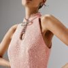Lavish Alice Women’s August Flower Detail Tie Strap Micro Button Midi Dress In Cornflower Blue