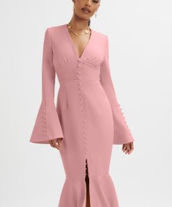 Lavish Alice Women’s Salma Fluted Sleeve Longline Fishtail Midi Dress In Sage Porcelain Print