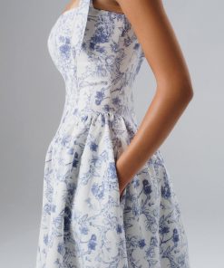 Lavish Alice Women’s Cara Micro Button And Loop Detail Volume Flared Mini Dress In Floral Broderie