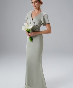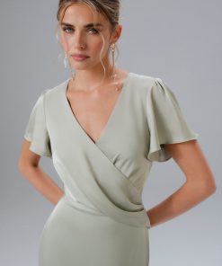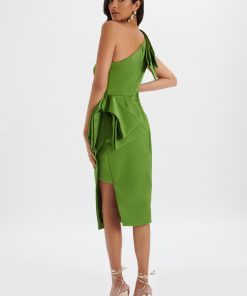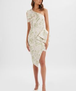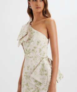 Lavish Alice Women’s Bloom One Shoulder Bow Detail Satin Midi Dress In Green Porcelain Print