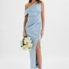 Lavish Alice Women’s Cindy Micro Button And Loop Detail Long Midi Dress In Blue Porcelain Print
