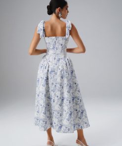 Step into effortless elegance with our BLOSSOM Tie Shoulder Corset Sundress in Blue Porcelain. Crafted from luxurious premium crepe, this chic and feminine piece is perfect for spring and summer occasions. Its timeless blue porcelain hue is complemented by a refined square neckline and flattering self-tie straps that add a romantic touch. The corseted waist enhances your natural silhouette, creating a close-to-body fit that’s both comfortable and elegant. Functional side seam pockets bring practicality to this sophisticated design, making it ideal for garden parties, spring celebrations, or dreamy holiday destinations. Embrace the charm and versatility of this sundress, the perfect choice for sunny days and special moments.
