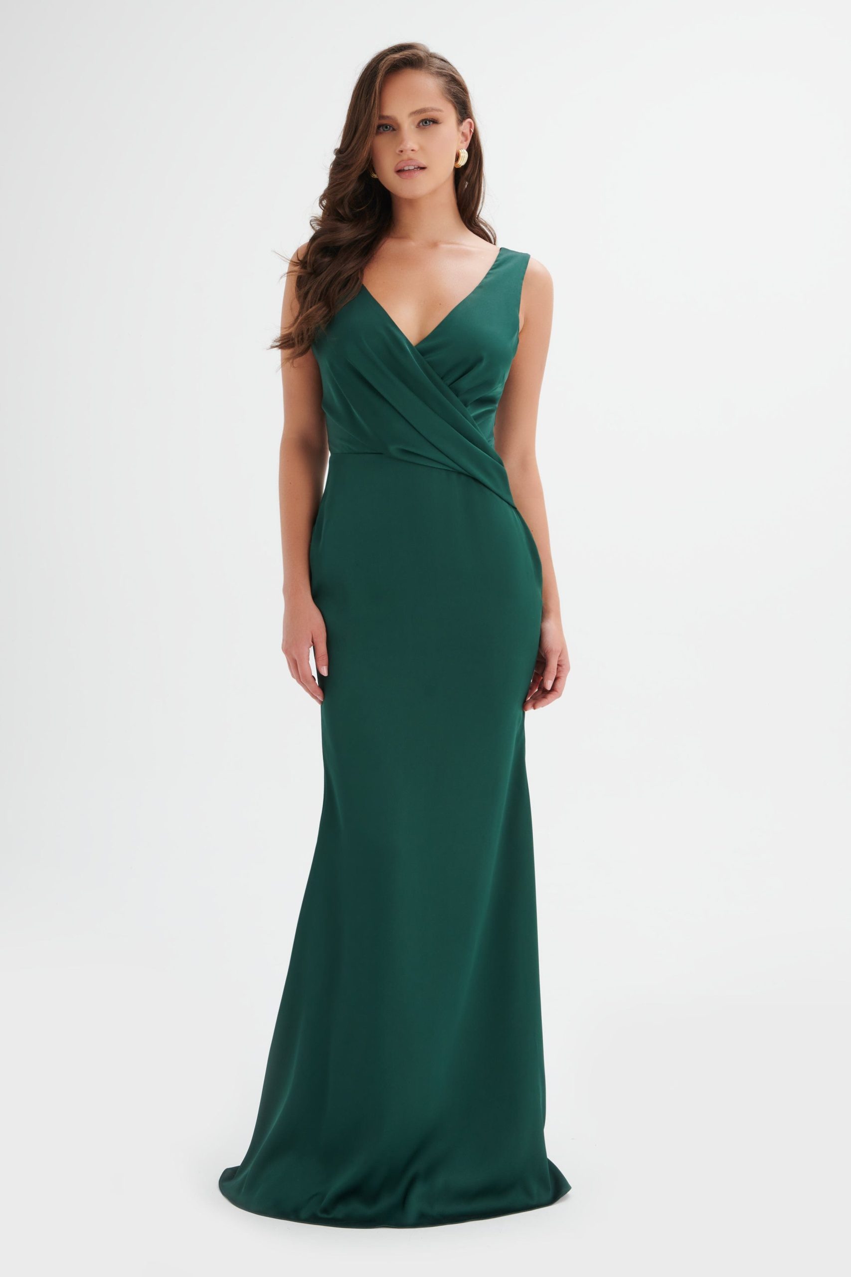 Lavish Alice Women’s Elle Draped Wrap Satin Maxi Dress In Emerald Green