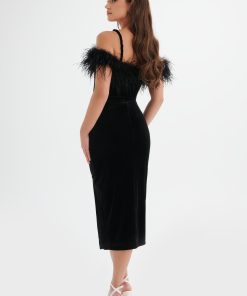 Lavish Alice Women’s Eva Feather Bardot Velvet Longline Dress In Black