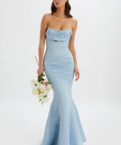 Channel your inner Cinderella and become the belle of the ball in our FREYA Bonded Satin Cowl Neck Maxi Dress in Dusty Blue. Simply elegant, the maxi length elongates your silhouette whilst a carefully crafted pleated neckline adds a touch of femininity.