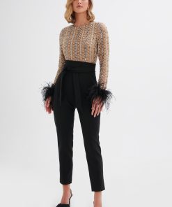 Step into timeless sophistication with the JAYDE Tailored Trouser in Mushroom. Expertly crafted from premium crepe, these high-waisted trousers feature a tailored leg silhouette that exudes elegance and refinement. Whether you’re dressing for a formal occasion or elevating your everyday look, the trousers deliver a sleek and polished aesthetic that’s effortlessly sophisticated. Pair with our CELESTE Pearl Embellished Corset Blazer in Mushroom for a chic, coordinated ensemble that commands attention at any event.