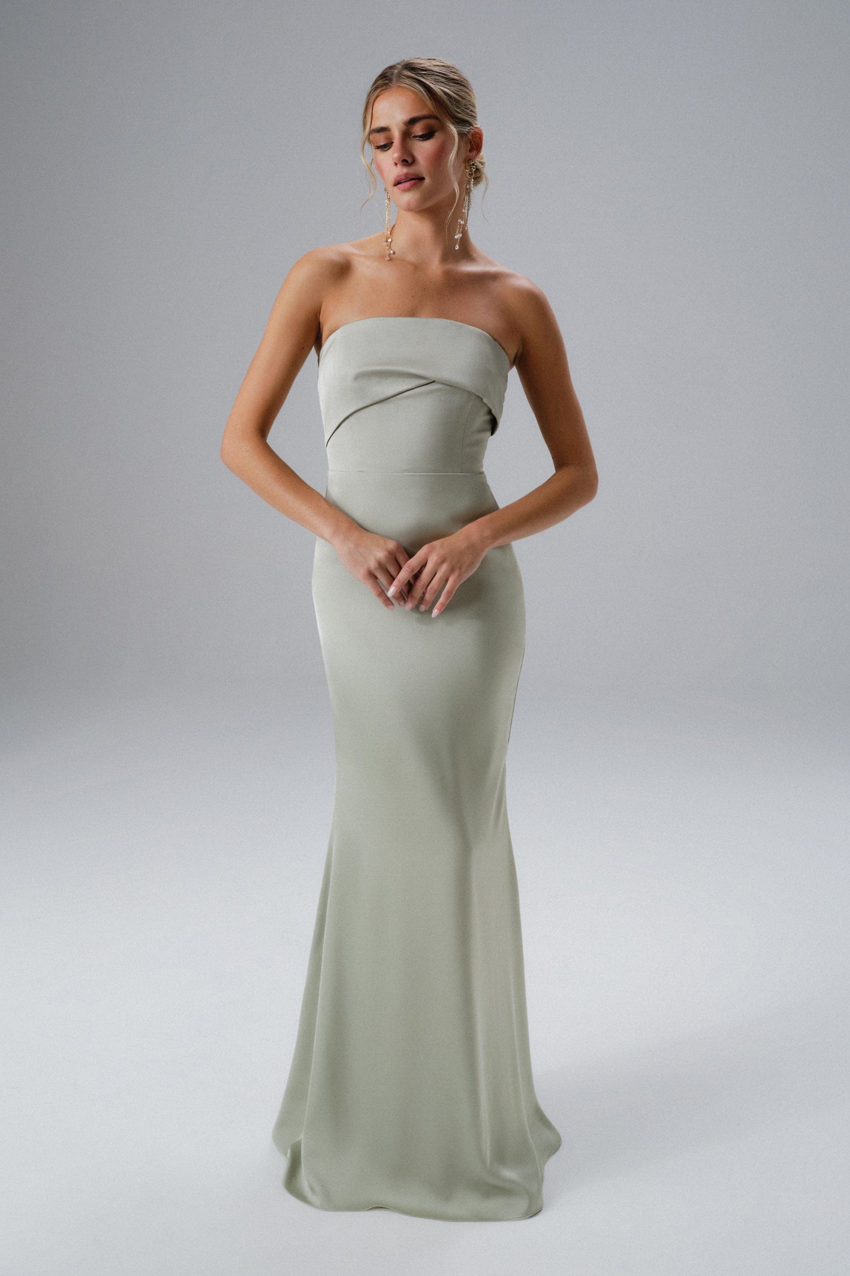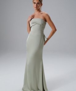 Lavish Alice Women’s Jovie Bow Detail Bandeau Satin Maxi Dress In Sage Green