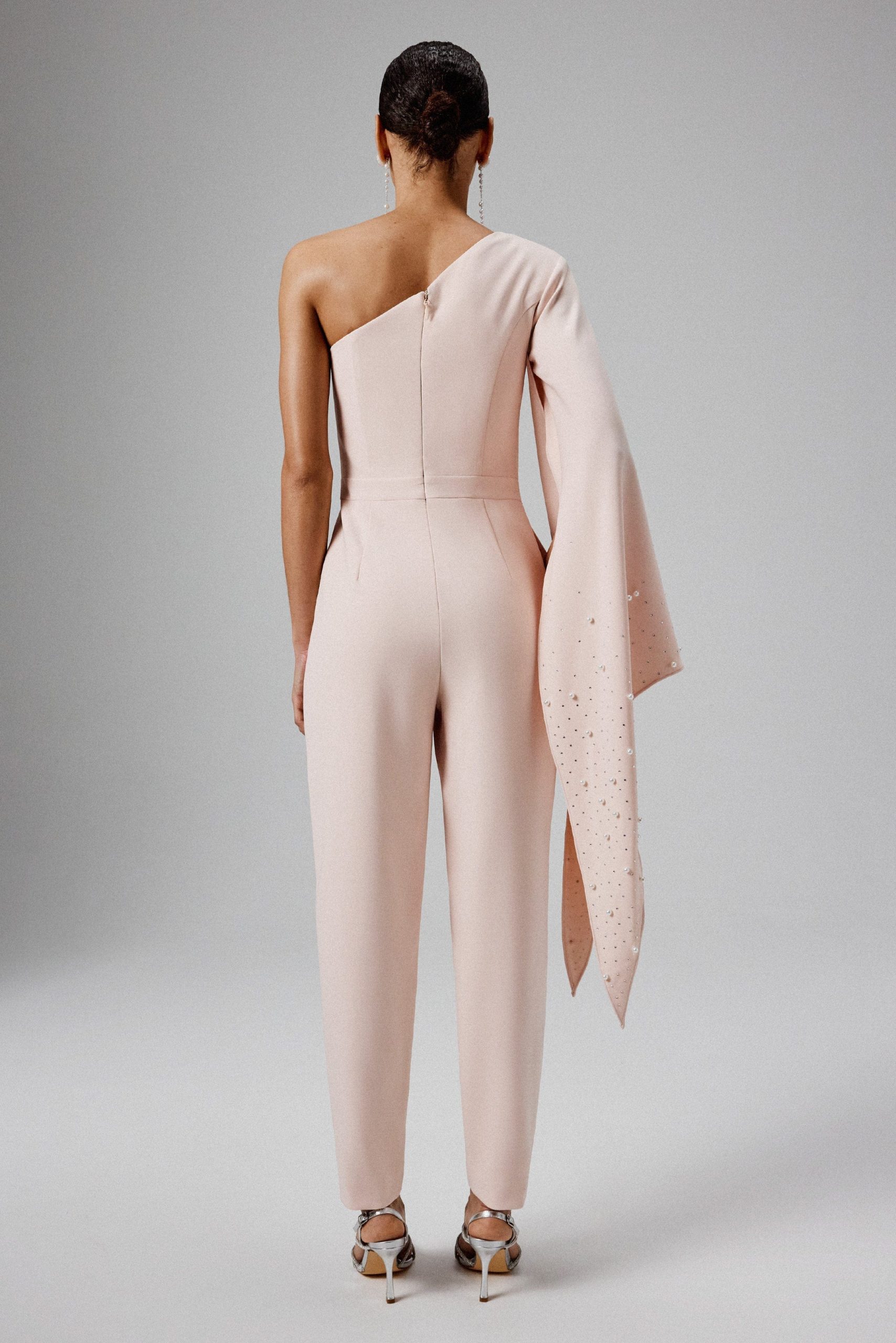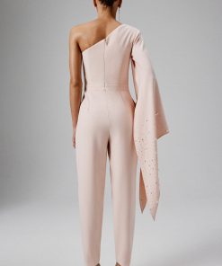 Lavish Alice Women’s Kady Ombre Embellished One Shoulder Jumpsuit In Blush Pink