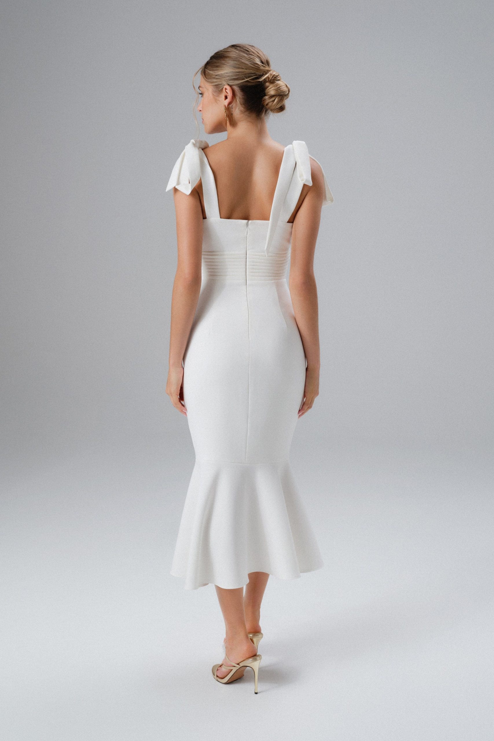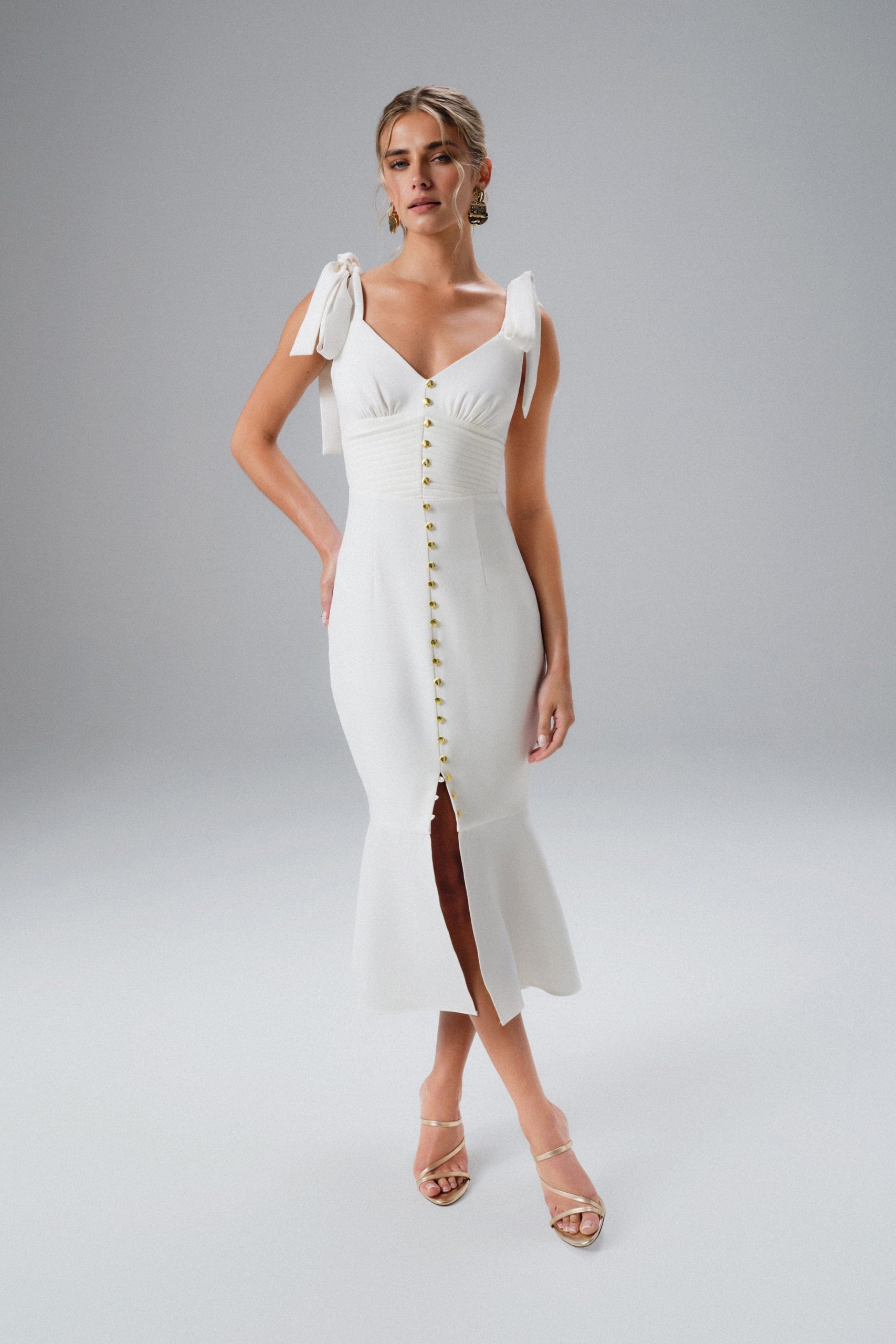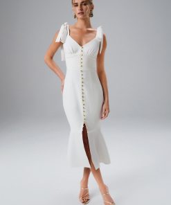 Lavish Alice Women’s Kamila Tie Strap Micro Shell Button Midi Dress In White