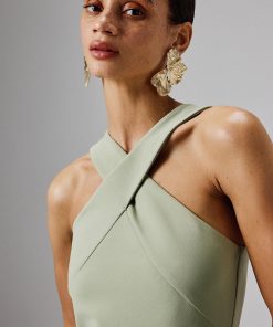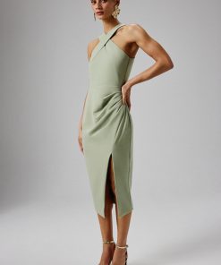 Lavish Alice Women’s Lena Wrap Halterneck Midi Dress In Sage Green