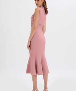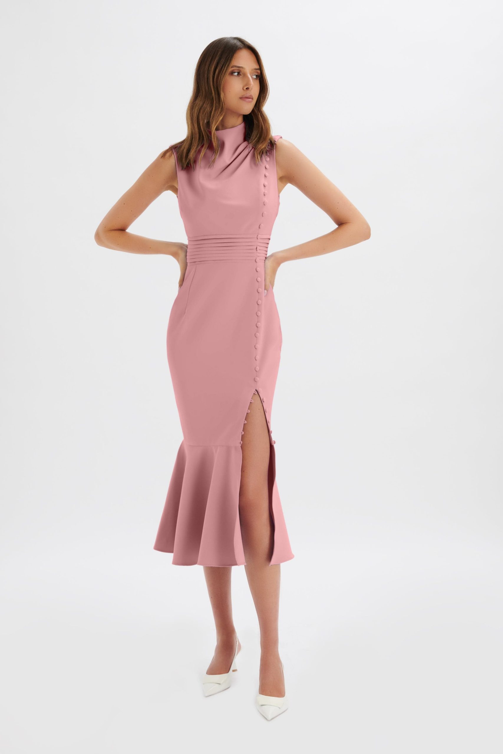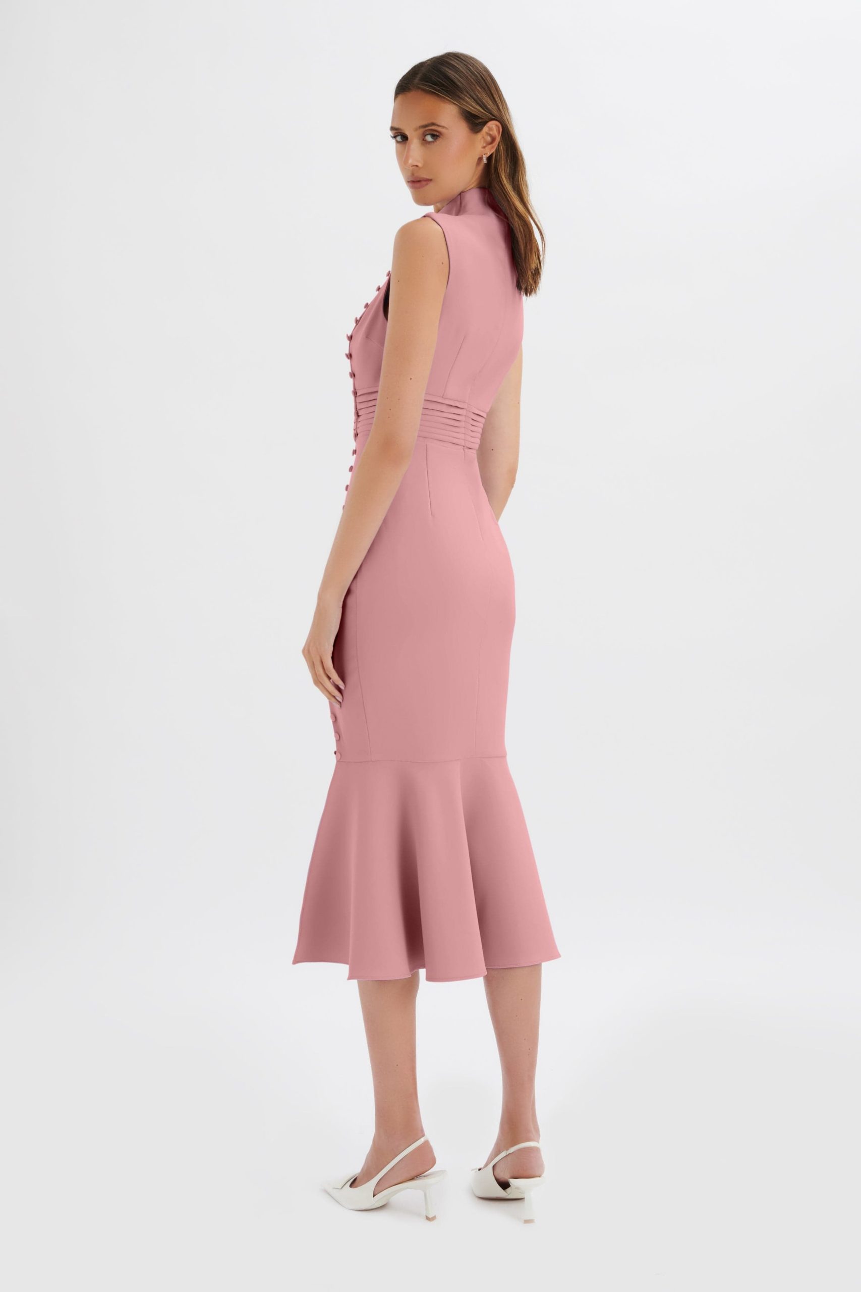 Lavish Alice Women’s Saffron High Neck Micro Button Midi Dress In Pink