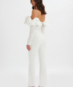 Lavish Alice Women’s Tallulah 3d Embroidered Satin Puff Jumpsuit In White