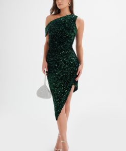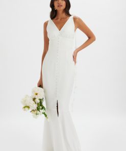 Lavish Alice Women’s Mischa Crystal Embellished One Shoulder Cape Jumpsuit In White